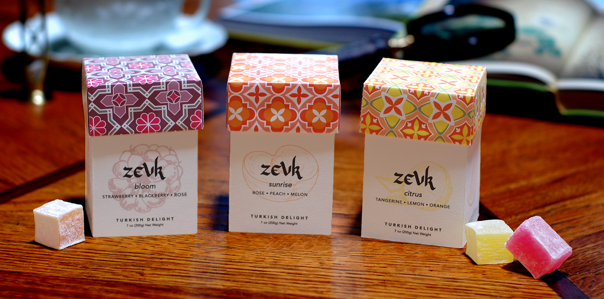 A unique line of gourmet Turkish Delights, thats packaging opens up just as fun as the treats themselves. Zevk is the Turkish word for “pleasure,” “delight,” “enjoyment,” and/or “treat.” Won a AIGA Flux Award